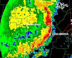 A bow echo is a line of storms in a curve shape. Below is a picture.
